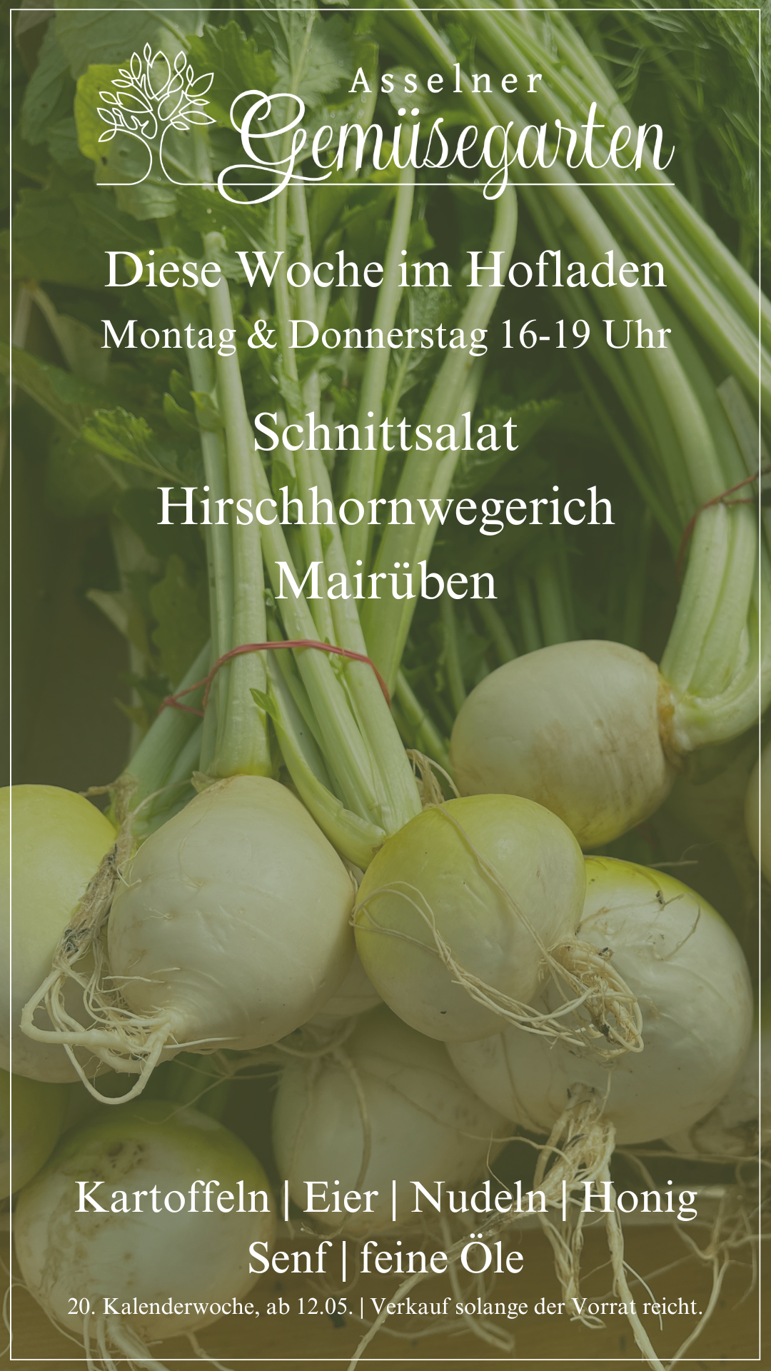 Bitte habt Verständnis dafür, dass wir am Wochenende kein frisches Gemüse anbieten können und uns ausschließlich der Beratung widmen.