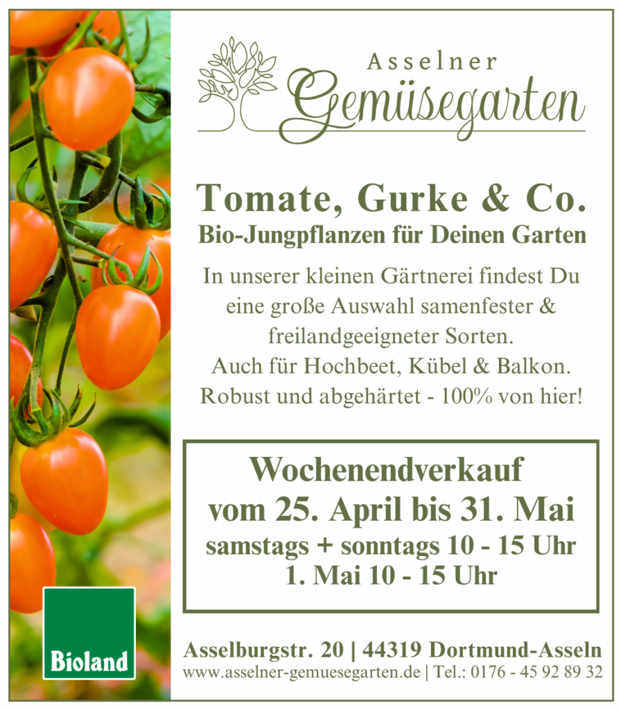 Fast das ganze Jahr über stehen Pflanzen im Verkauf, die größte Auswahl hast Du aber zu Beginn der Hauptsaison ab April. Dann erweitern dann unsere Öffnungszeiten, damit Du die Wochenenden auch was zu pflanzen hast. Wir wünschen Dir viel Freude und „Gut Grün“!